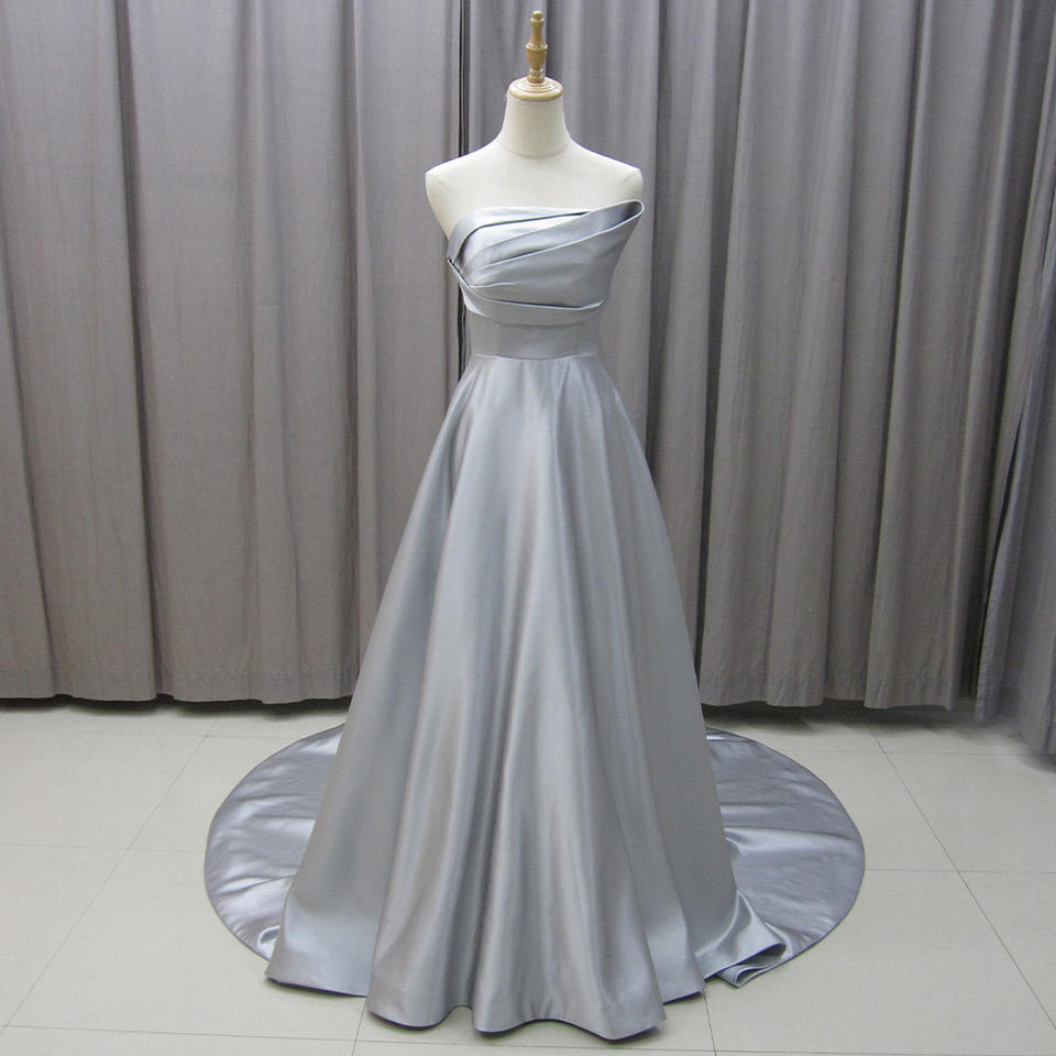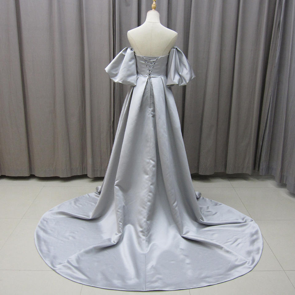 Jancember MZ0017 Simple Off Shoulder Gray Satin Women's Party Gowns Dresses for Evening