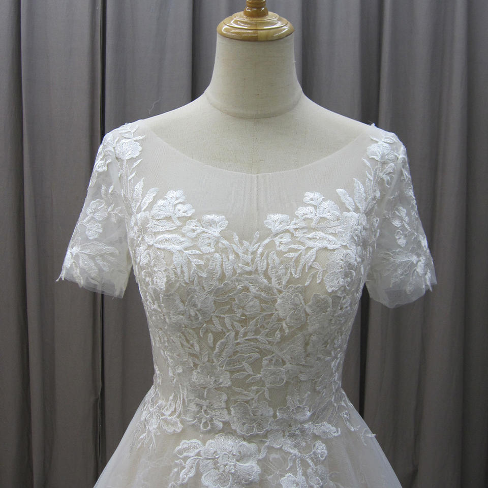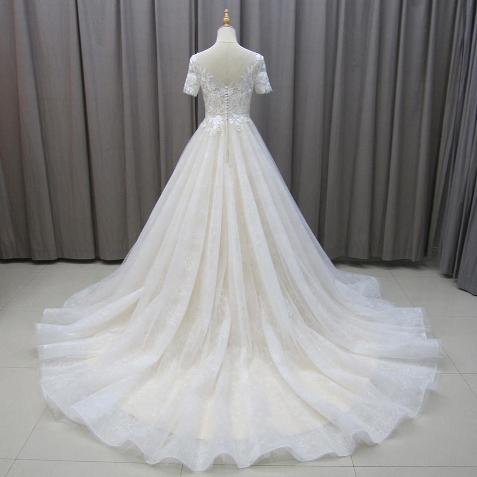 Jancember MZ0021 Beautiful Short Sleeve Embroidery Lace Wedding Bridal Dresses