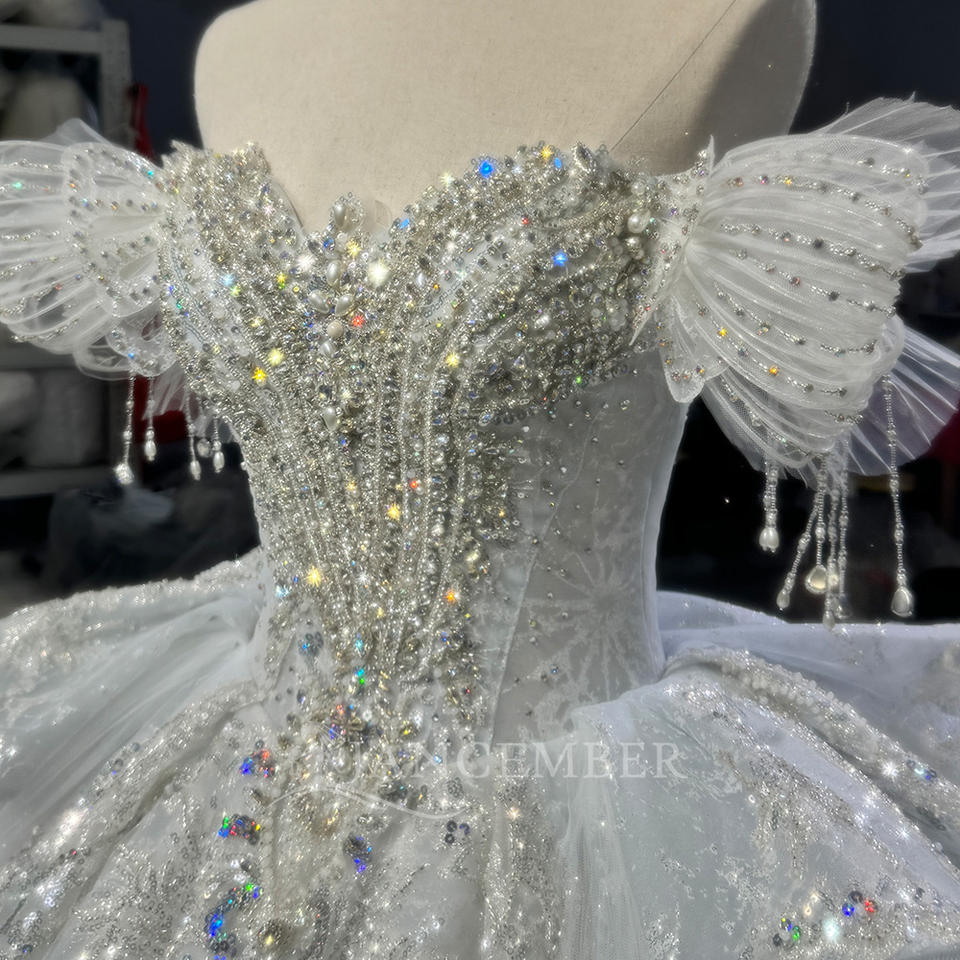 For OY018 Princess Sweetheart Lace Crystal Appliques Long Sleeve Chapel Train Floor-Length Empire Bridal Wedding Dress
