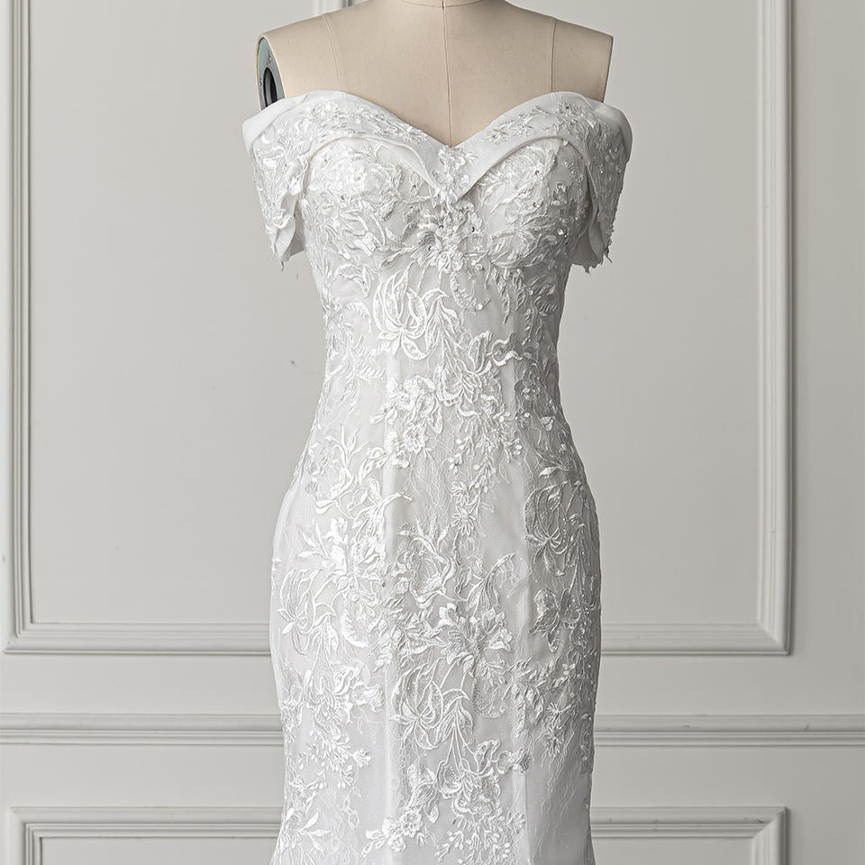 For RL281 Elegant Lace Sweetheart Bridal Wedding Gowns Crystal Appliques Embroidery Mermaid Trumpet Silhouette Court Train
