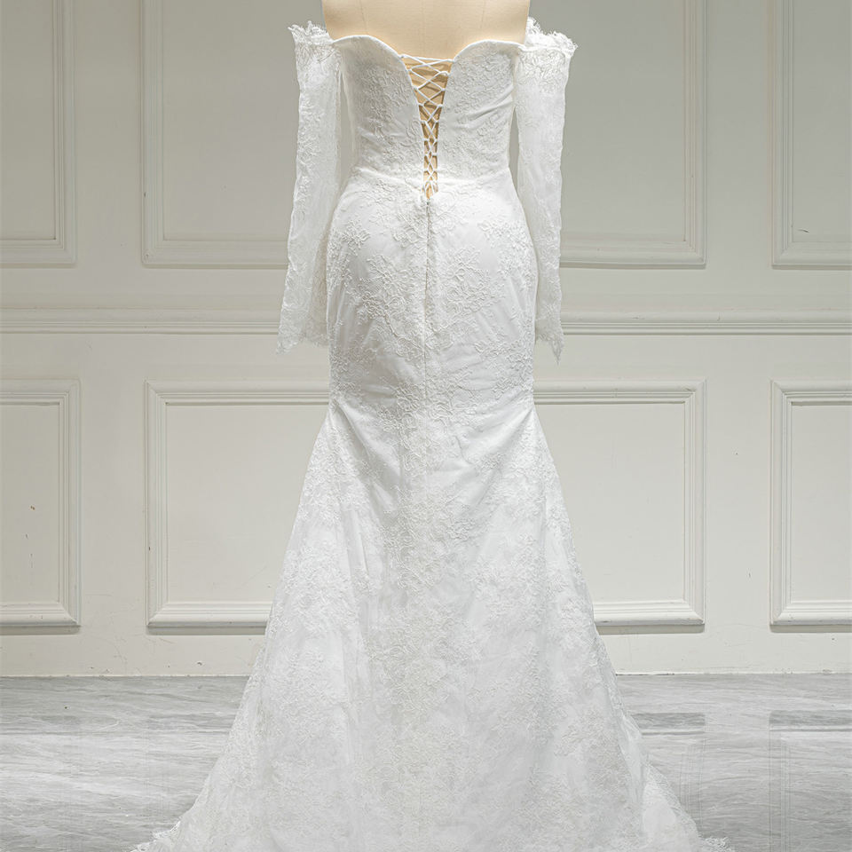 Jancember RL306 Beautiful Off Shoulder Boat Neck Embroidery Mermaid Wedding Dresses