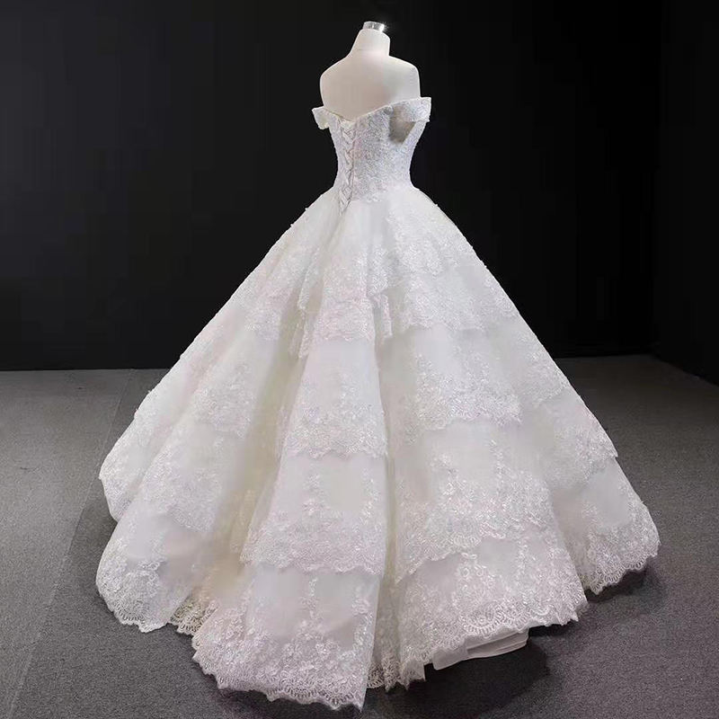 Jancember RSM66786 Luxury Wedding Dress off Shoulder Dress Sweetheart Puff Lace Wedding Gown