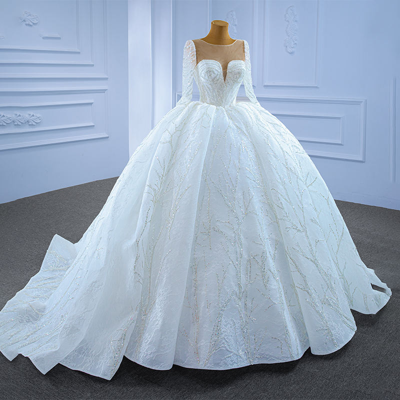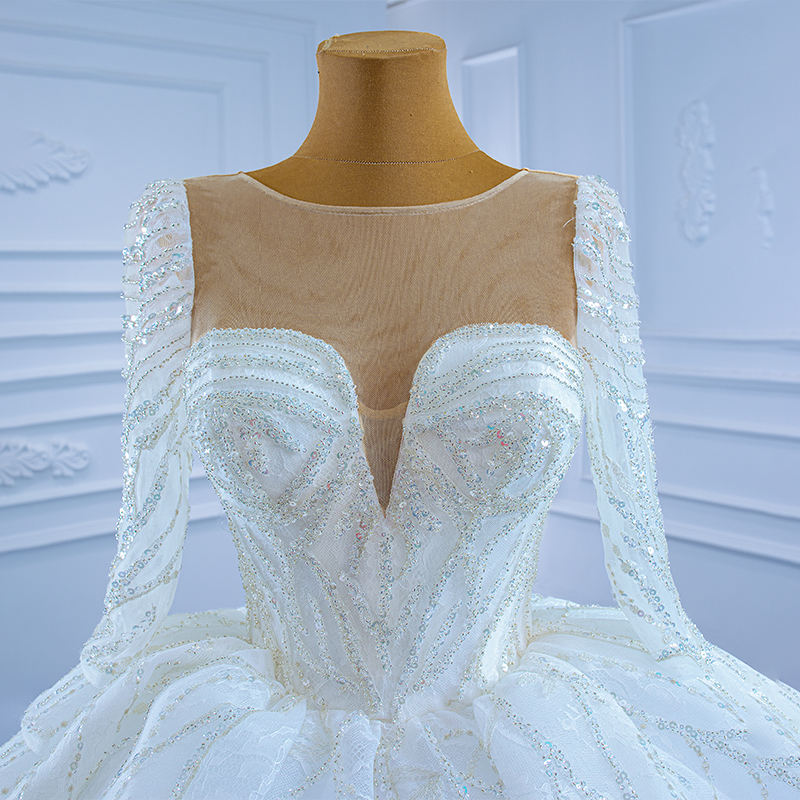 Jancember RSM67273 Illusion Empire Sequins Long Sleeve Bridal Ball Gown Wedding Dresses