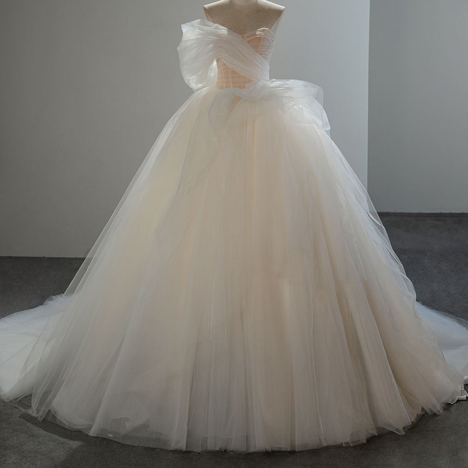 Jancember SFY254 Traditional One Shoulder Bridal Wedding Dresses Tulle Fabric for Girls