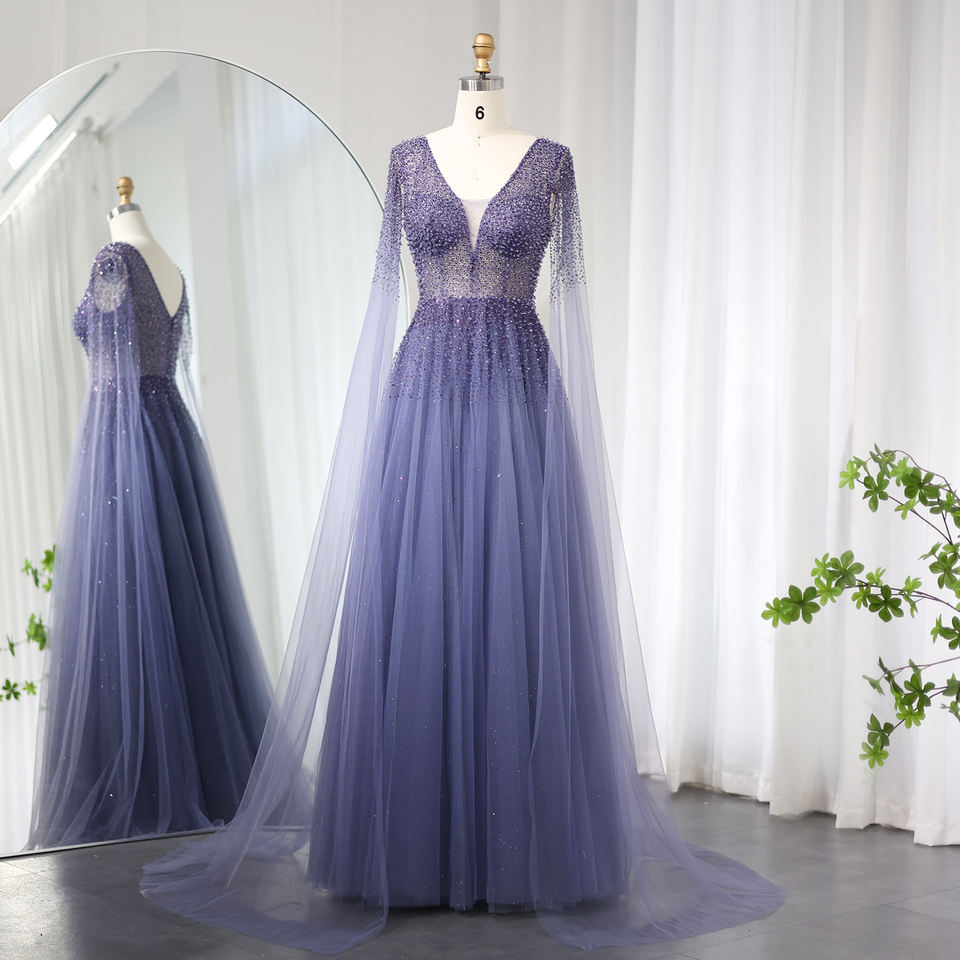 For SZ012-3 Illusion Purple 3D Floral Print Floor-Length Formal Women's Party Dress Feathers Pleat Detail Anti-Static