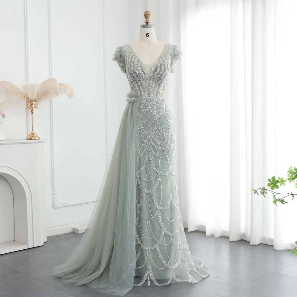 Jancember SZ100 Luxury Dubai Short Sleeve Evening Party Prom Gowns Dresses