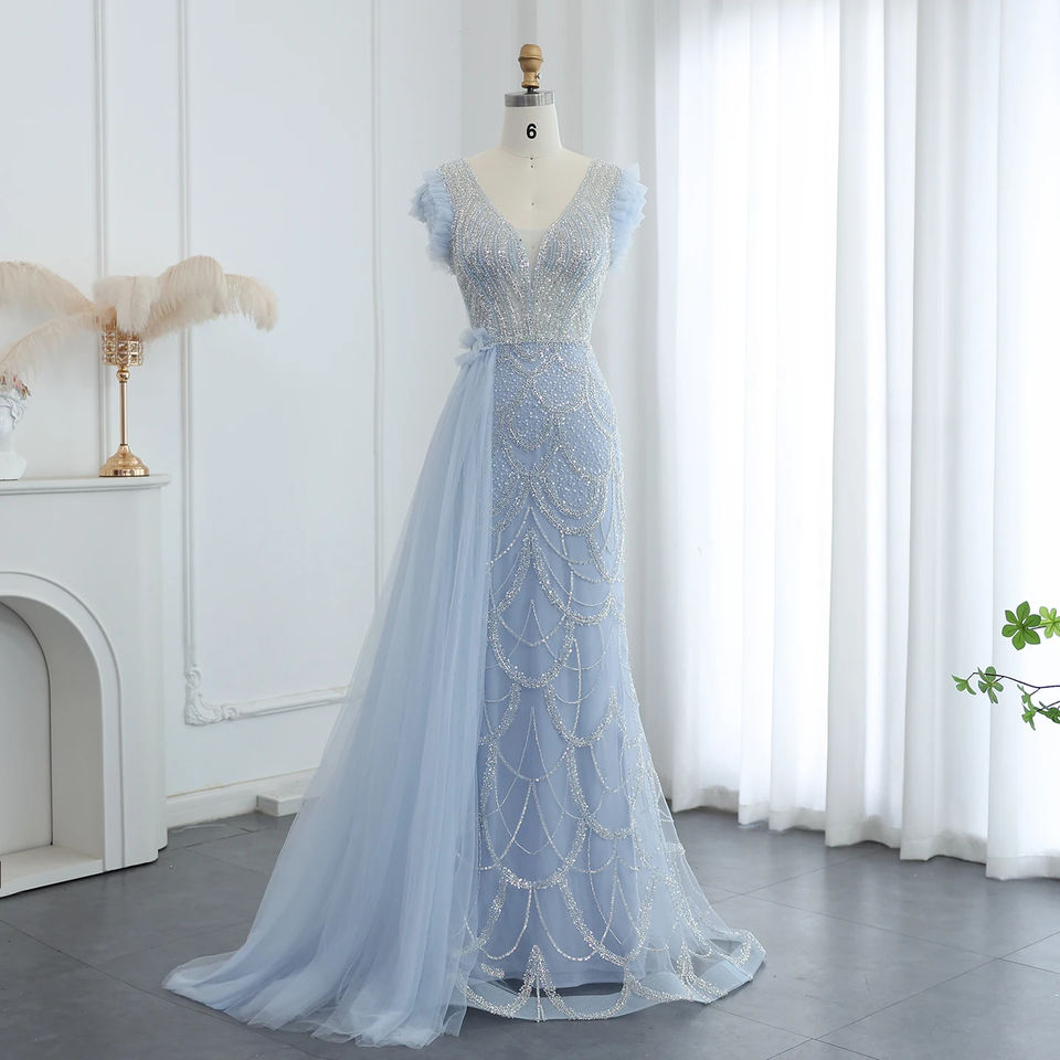 Jancember SZ100 Luxury Dubai Short Sleeve Evening Party Prom Gowns Dresses
