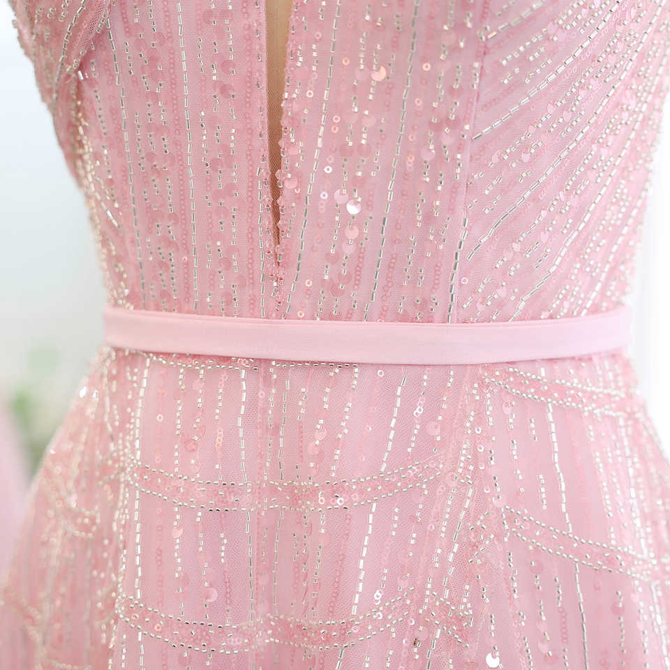 For SZ329 Fairy Pink Halter Asymmetric Floor-Length A-Line Organza Evening Birthday Party Feather Crystal Pattern Pleat
