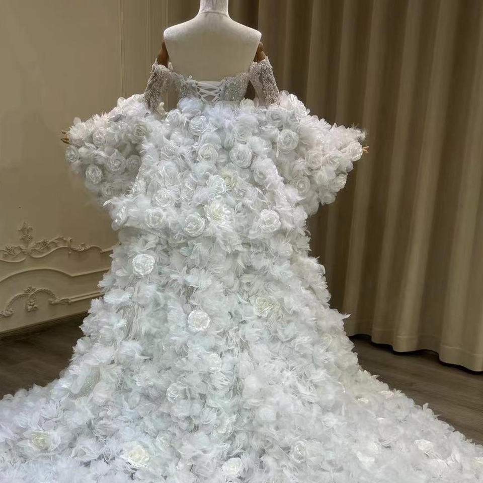 Jancember YL0040 Luxury Off Shoulder 3d Flower Mermaid Wedding Dresses With Shawl