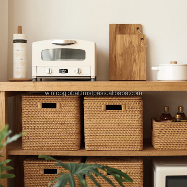 Japandi Style Eco-Friendly Handwoven Rattan Multifunction Clothing Organizer Storage Boxes Bins Kids Rectangle Shape Home Decor
