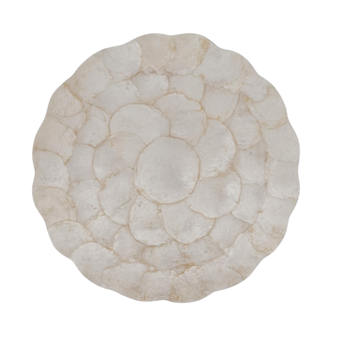 Japandi Style MOP Shell Inlay Placemat White Charger Plate for Fusion Interior Design and Elegant Kitchen