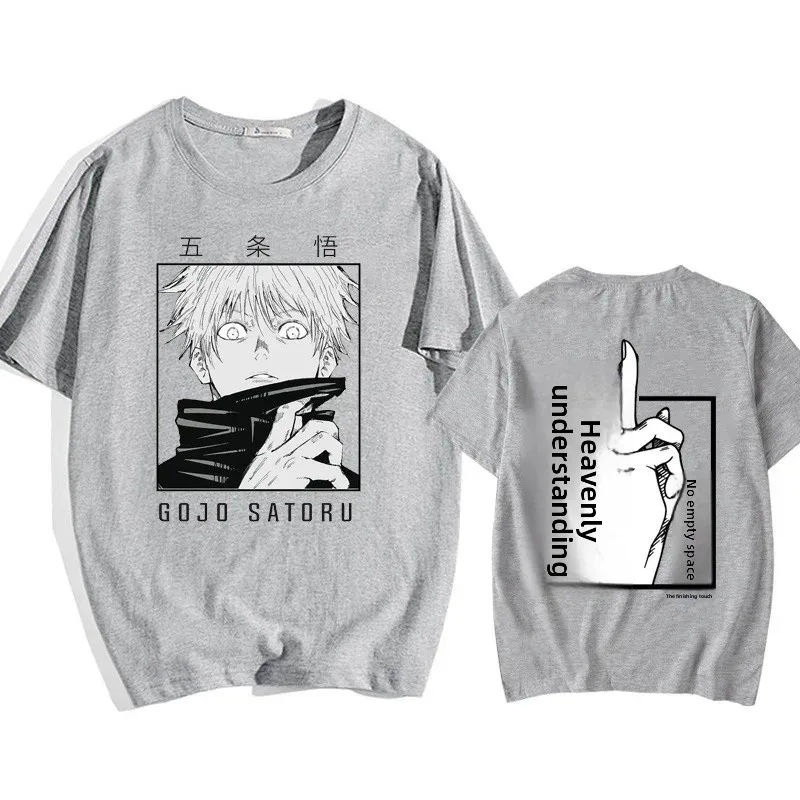 Japanese Anime Punk Gojo Satoru Printed Loose T-shirt Haraju Cotton Crew Neck Short Sleeve Women's Fashion Top