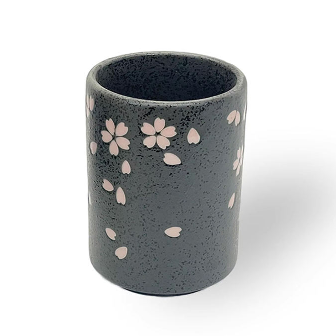 Japanese Black Ceramic Pretty Delicate Pink Petals Tea Cup Vintage For Colorful Made In Japan Gift Set