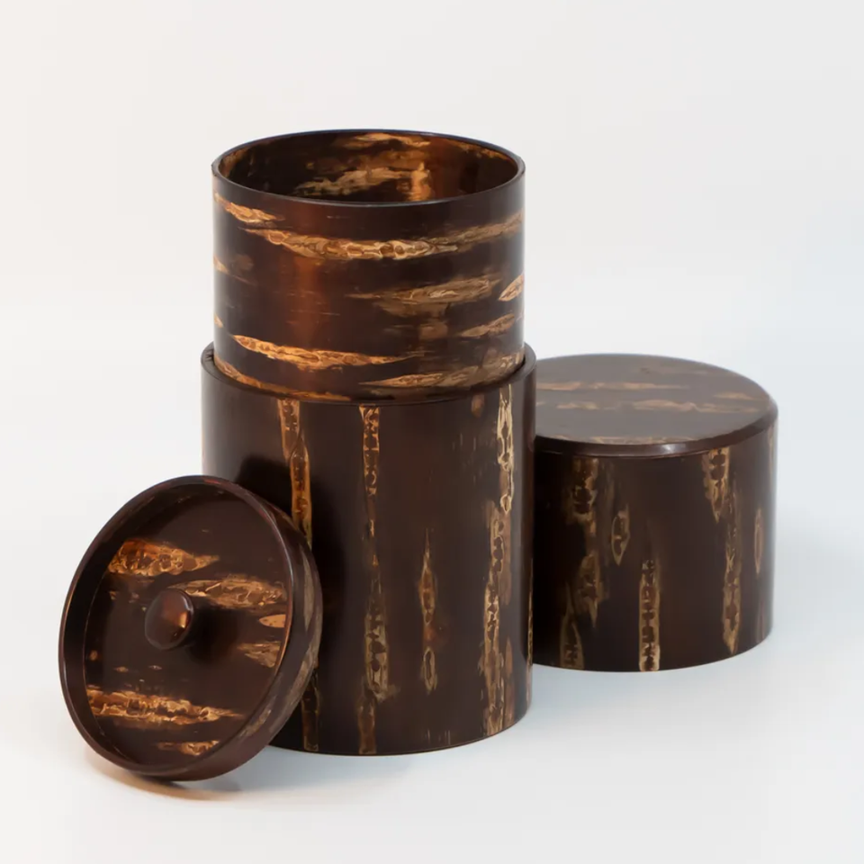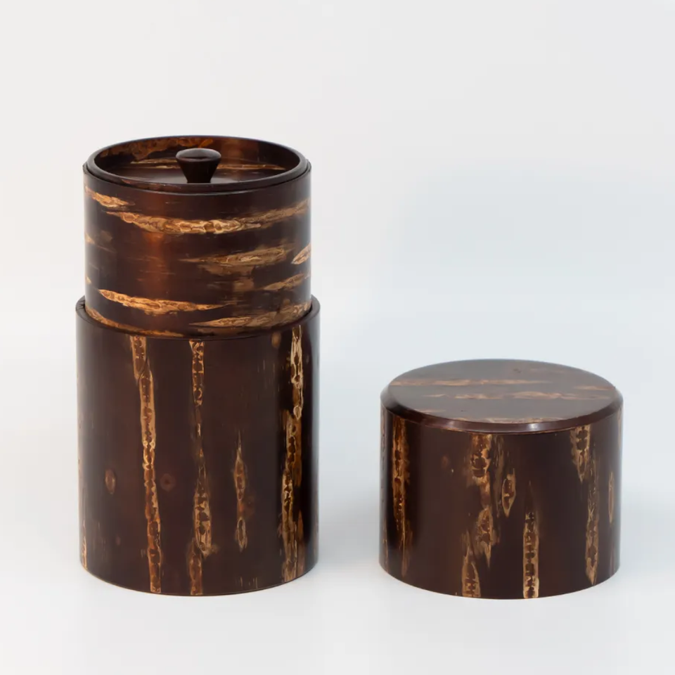 Japanese Handmade Sakura Cherry Bark Tea Caddy Canister Handmade Traditional Kabazaiku Craft OEM Custom Tea Storage Box Gift