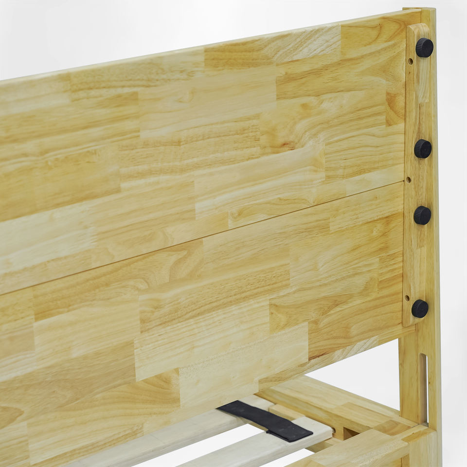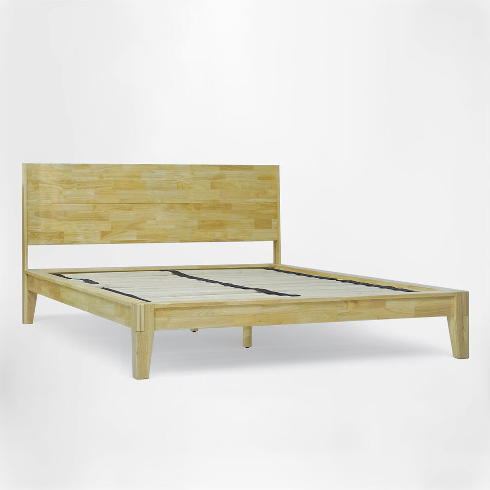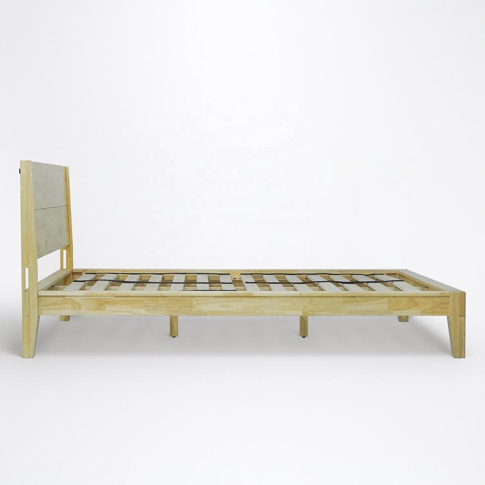 Japanese Joinery Rubberwood Queen size Platform Bed No-Tool Wooden Headboard with Sliding Grooves Wooden Bed Frame OEM/ODM