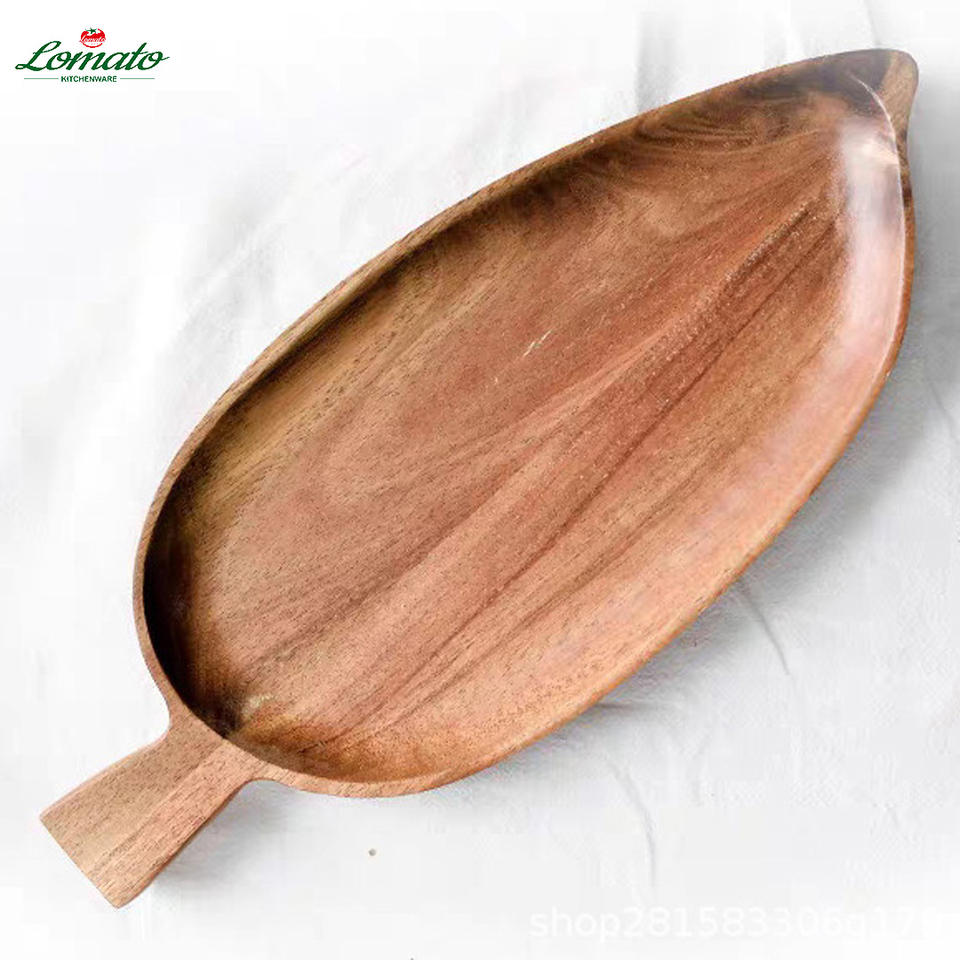 Japanese Leaf Shaped Acacia Wood Serving Tray Handles Elegant Coffee Cup Dessert Plate Saucer for Hotels Afternoon Tea Parties