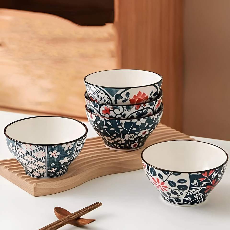 Japanese Porcelain Disposable Noodle Bowl with Glossy Glaze for Serving Soups Rice or Curry on Dining Table or Kitchen Counter
