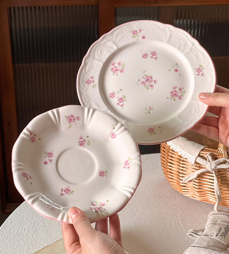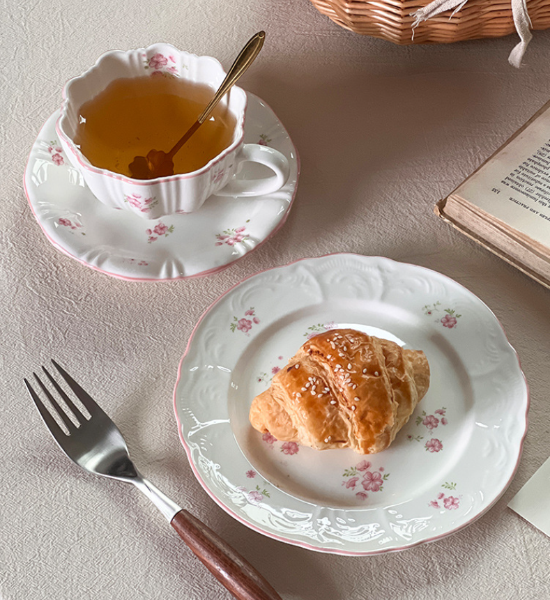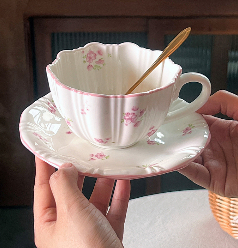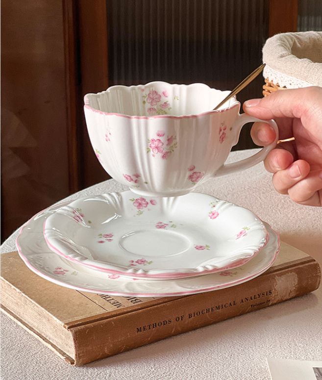 Japanese Style Design Pink Cherry Blossom Design Cute Afternoon Tea Tableware Set - Ceramic Cups And Saucers Set