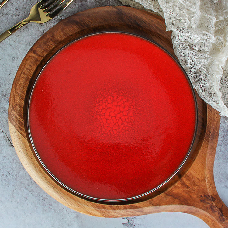 Japanese Style Hand-Painted Ceramic Dishes Plates Reactive Glazed Red and Black Porcelain Dinner Plates Set for Hotel Restaurant