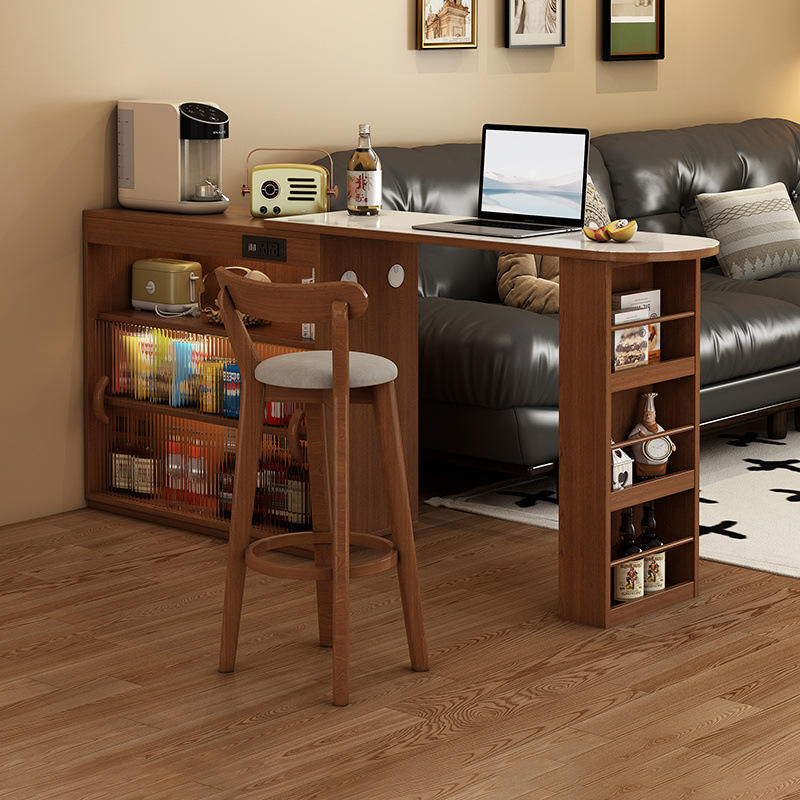Japanese Style L Shape Bar Table With Storage Cabinet For Home Living Room Multi Functional Island Desk
