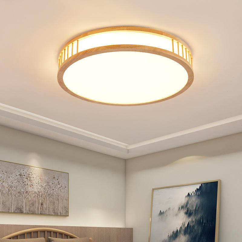 Japanese-Style LED Ceiling Light Warm Wooden Design for Bedroom & Living Room for Tatami Rooms AC Power Source