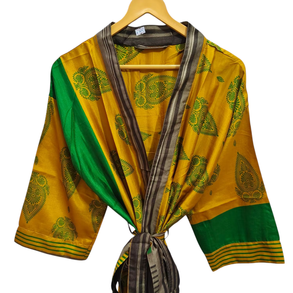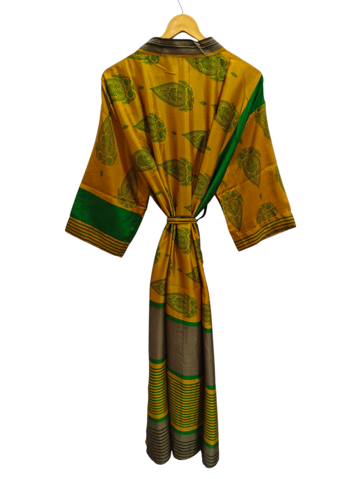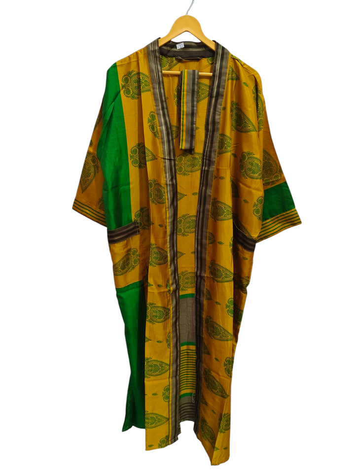 Japanese Style Lounge Wear Bikini Cover Up Swim Wear Long Dress Indian Recycled Sari Silk Kimono Night Wear Gown,