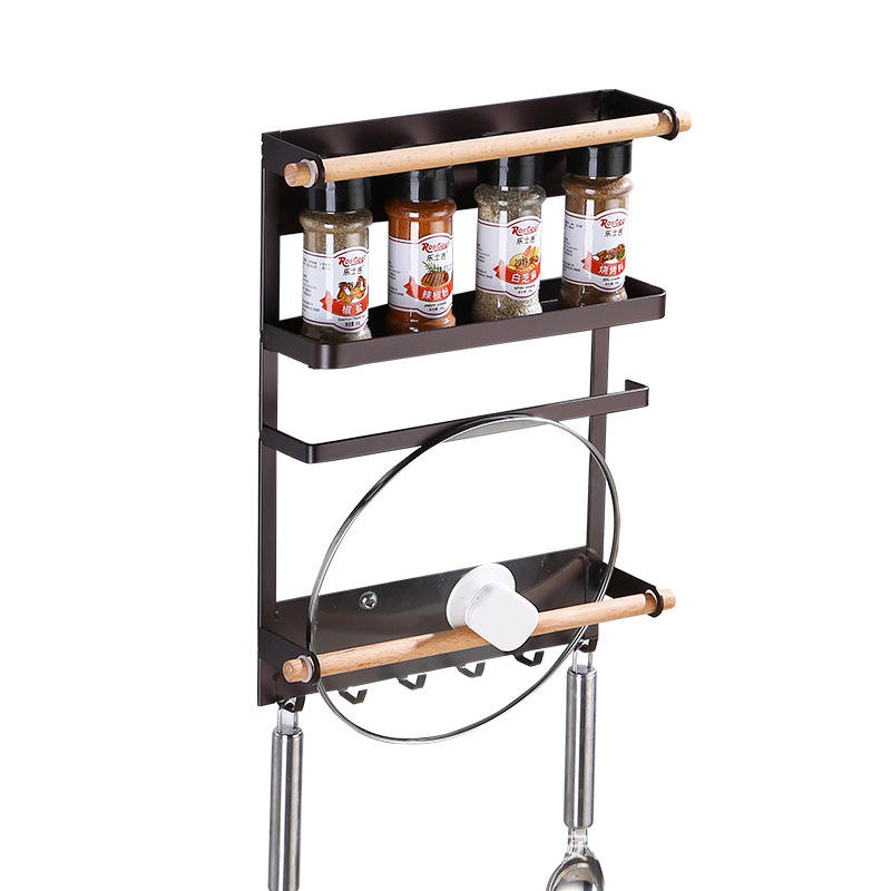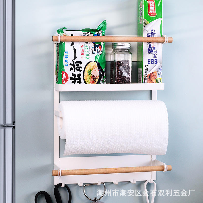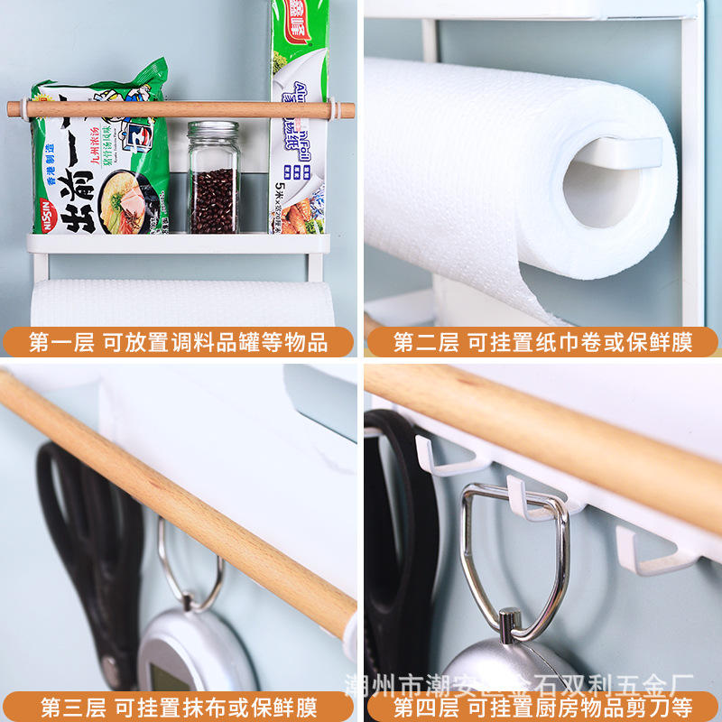 Japanese Style Magnetic Fridge Storage Rack Wall Mounted 4 Layers Spice Organizer With Paper Towel Holder Kitchen Hanger