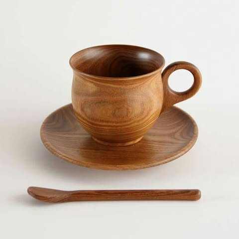 Japanese Style Natural Wood Eco-friendly Mug for Coffee Tea & Hot/Cold Beverages-Cylinder Shape Dishwasher Safe & Durable