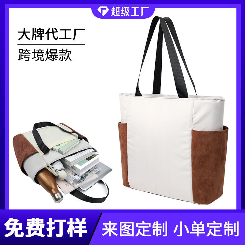 Japanese Style Padded Tote Bag For Women Large Capacity Water Resistant Black Gray Khaki Color Blocking Shoulder Bag Everyday