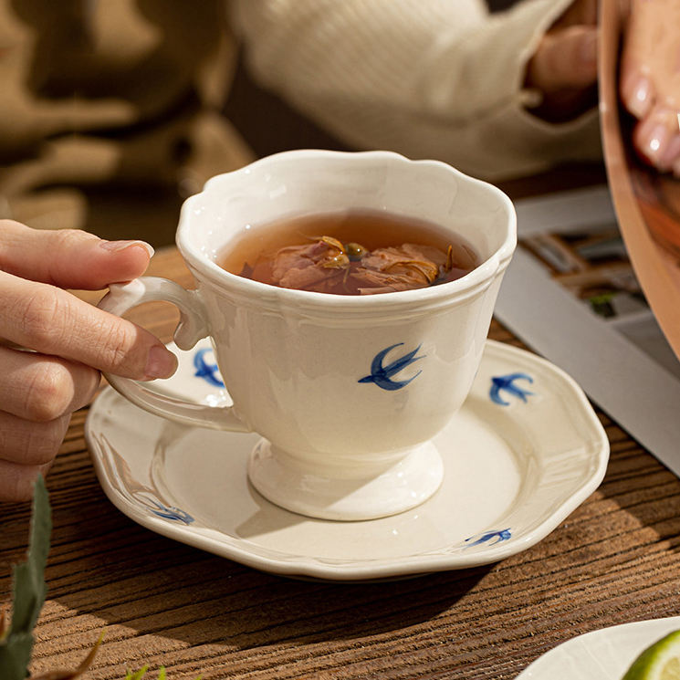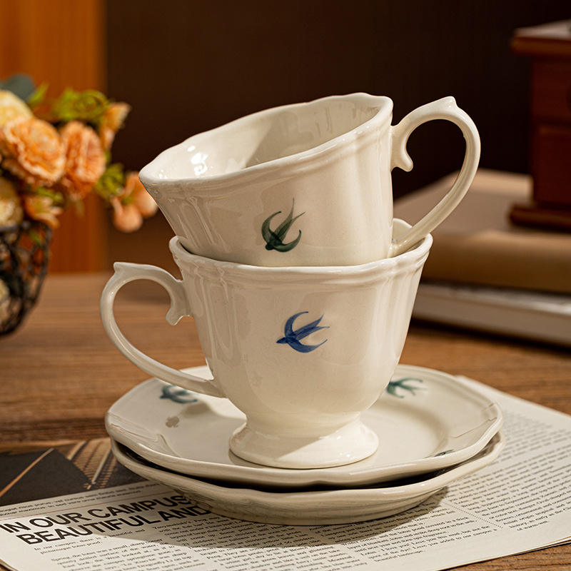 Product Name:Hand-Painted Swallow Ceramic Coffee Cup and Saucer Set