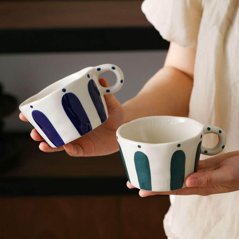 Japanese Style Tea Mug Hand Painted Ceramic Mug Striped Coffee Cup