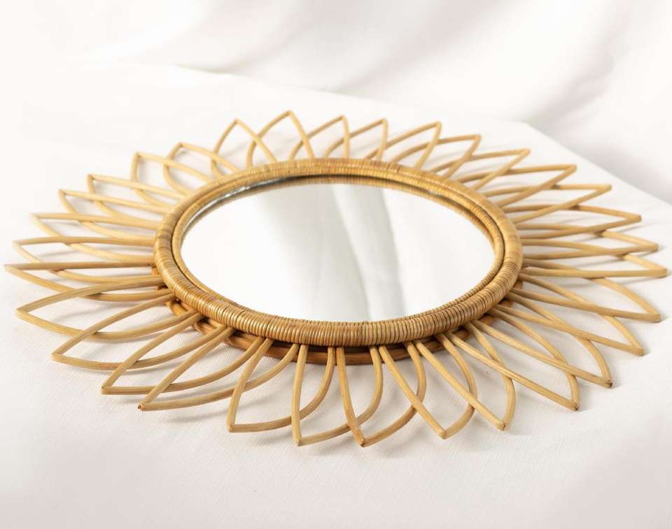 Japanese-Style Vintage Glass Wall Mirror Naturl Handicraft Rattan Wicker for Everyday Home Decor Japandi Design for Living Room