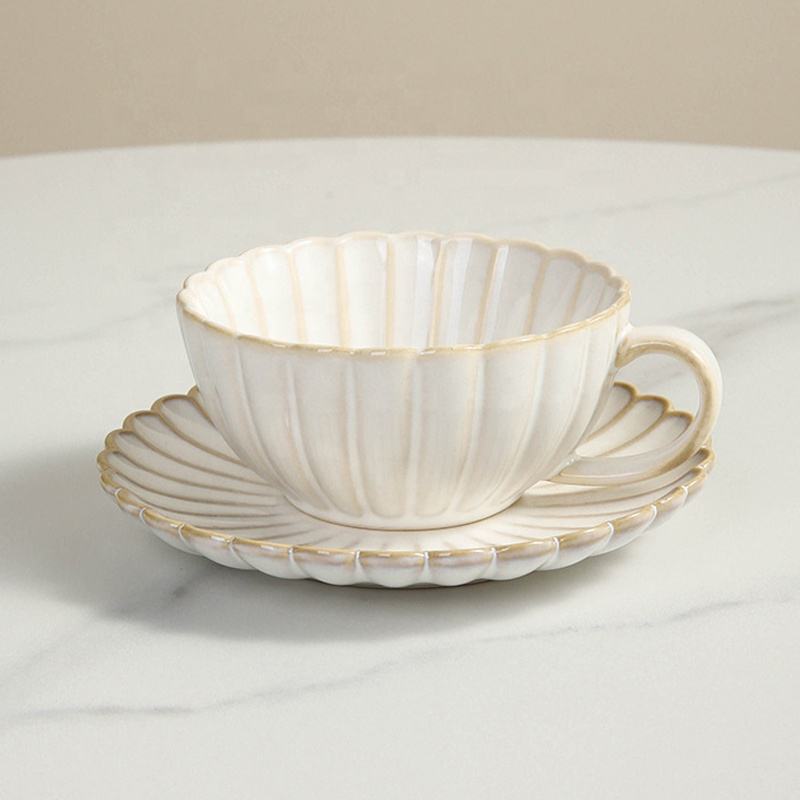 Japanese Vintage Porcelain Tea Cup and Saucer Set Cream White Pumpkin Shaped Ceramic Mug Retro Latte Coffee Cup