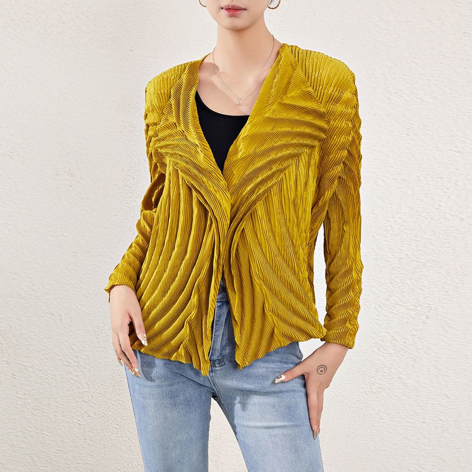 Japanese Irregular Pleated Short Jacket for Women Thin Lapel Long Sleeve Pleated Miyake Top Sunscreen Jacket for Women