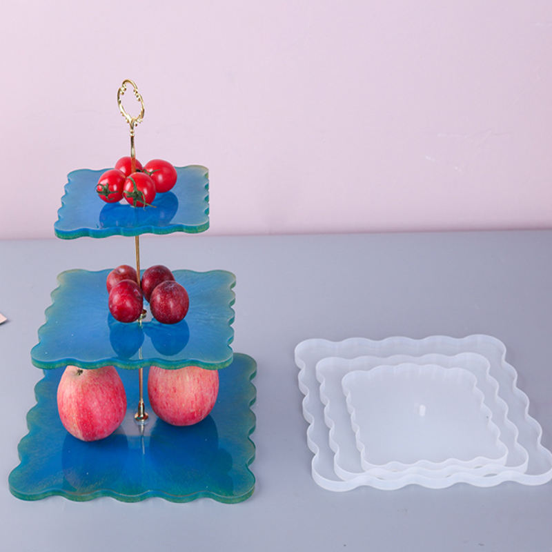 Jaunty DIY Rubber Drop Mould square Wave Three-layer Tray Resin Mould Coasters Handmade Epoxy Resin Silicone Mould