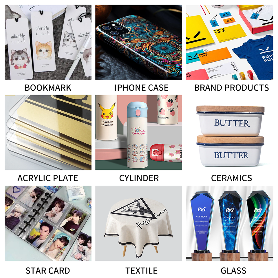 Printing Material:phone case, acrylic, bottle, metal, wood, leather, glass, title