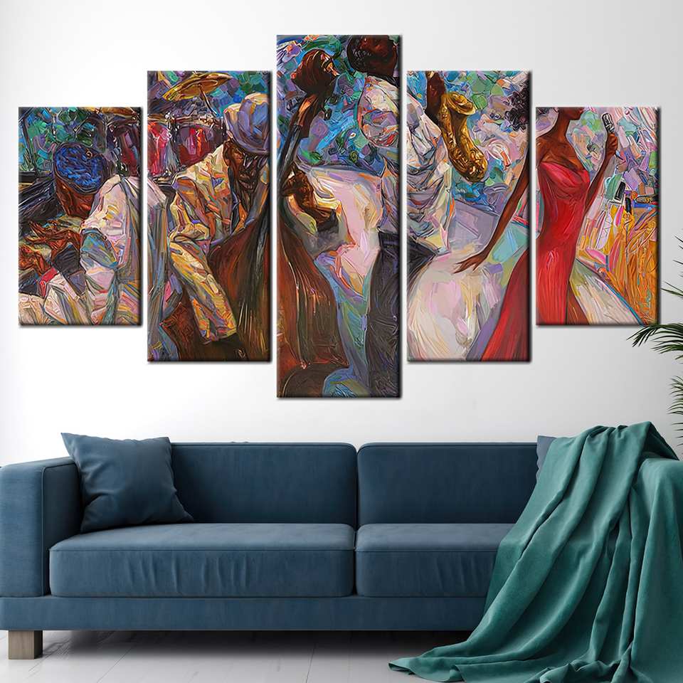 Jazz Musicians Art Printed Canvas - Elegant Wall Decor for Music Lovers,5P Mix:Gallery Wrap
