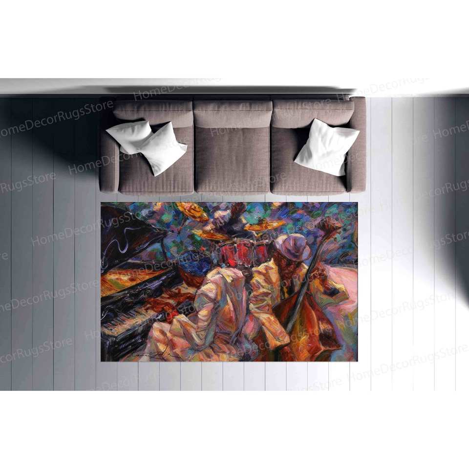 Jazz Musicians Painting Printed Rug - Vibrant Ethnic & Classic Design,Nonwoven Soft Rug