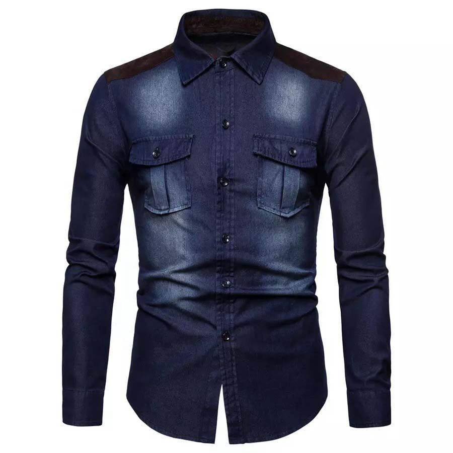 Jeans Shirt Long Sleeve Casual Button Top Comfortable Feel for Travel Daily Fashion Wear and Easy Outfit Matching