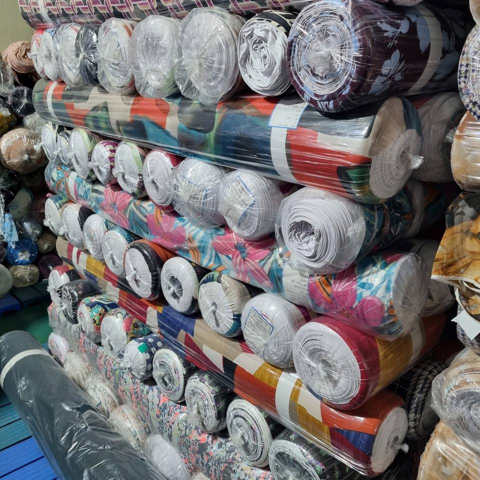 Jenny stock lot. Korea polyester venechia spandex print polyester fabric textile many shining flower best quality dress women