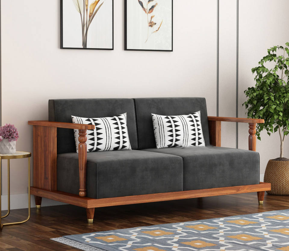 Jeny Modern 2-Seater Solid Teak Wood Frame Sofa Foam and Fabric for Indoor Living Room Area for Villa Use