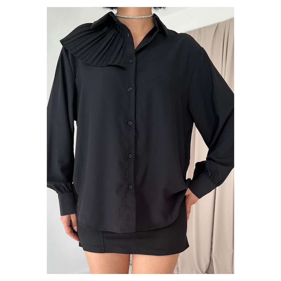Jessica Black Pleated Chiffon Shirt Women Elegant Party Blouse Sheer Layer Detail