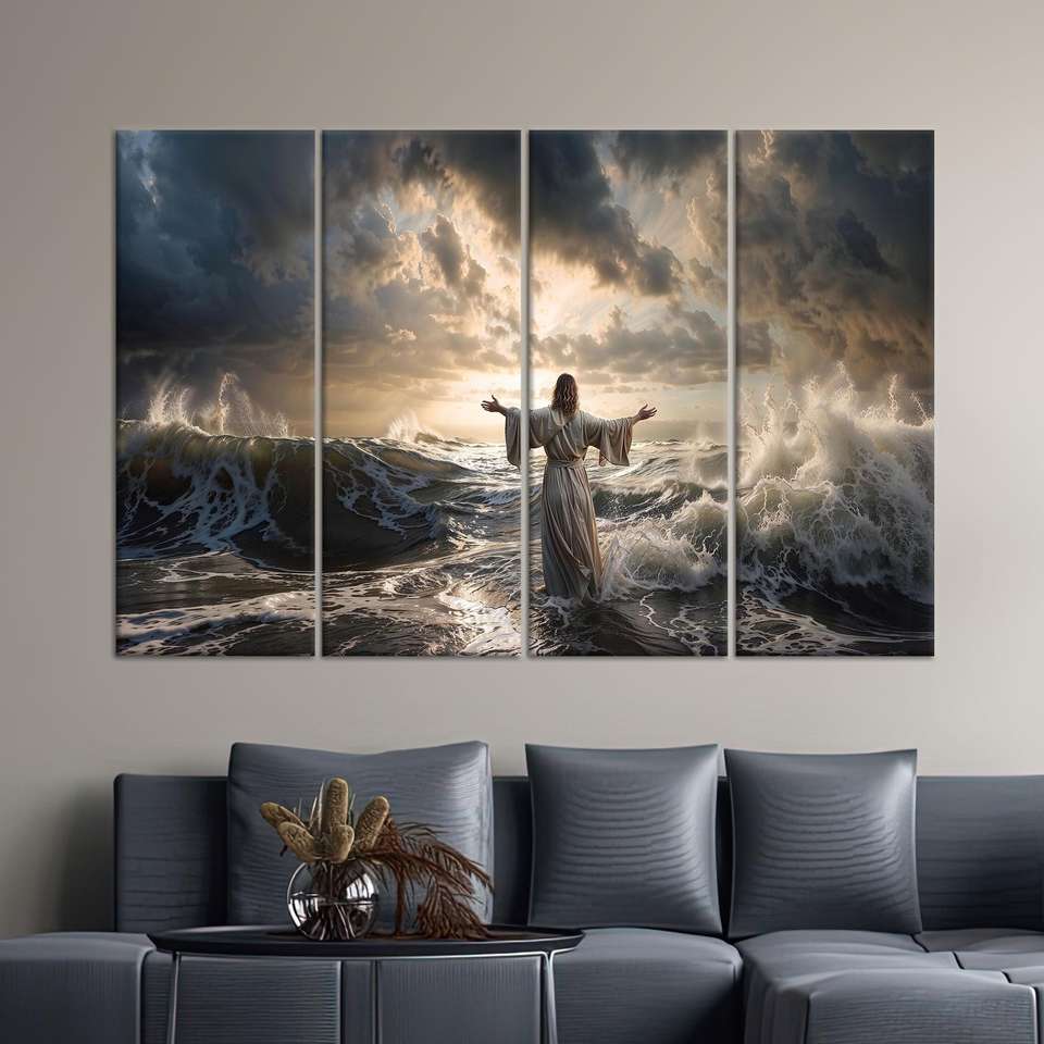 Jesus Walking on Water Canvas Spiritual Wall Art,SET OF 4 CANVAS