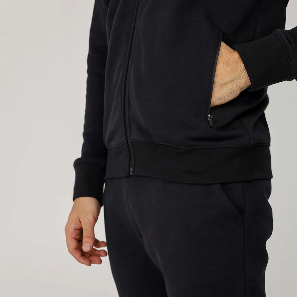 Jet Black 100% Cotton Winter Fashion Heavyweight Workout Premium Full Face Zip Digital Breathable Quick Dry Custom Men Zipper