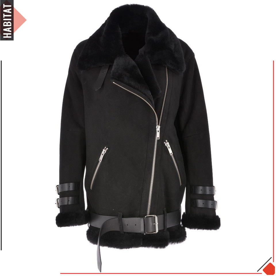 Jet Black Ladies Leather Jacket Fur Belt Lambskin Soft Smooth Winter Warm Wear Zipper Jacket