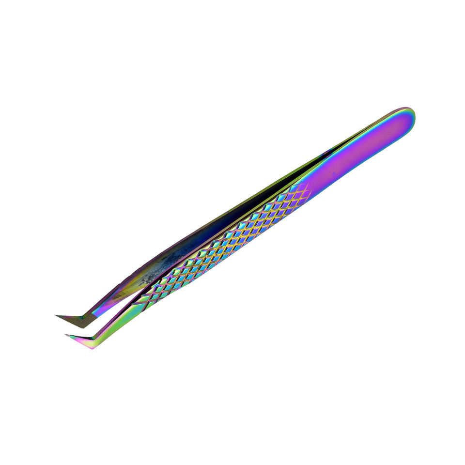Jeweler Style Tweezers Stainless Steel Multi Titanium Rainbow Color Fine Point Tweezer Eyelash Applicator Tool Curved Eyelash