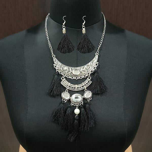 Jeweljunk 1111705C Fine Copper Necklace Set Black Thread Rhodium & Gold Plate with Zircon & Ruby for Gift