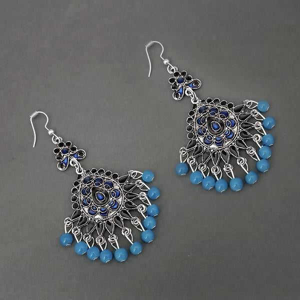 Jeweljunk 1311090 Cute Religious Silver Plated Blue Bead Hoop Earrings Zircon Emerald Stones Platinum Rose Gold Main Material