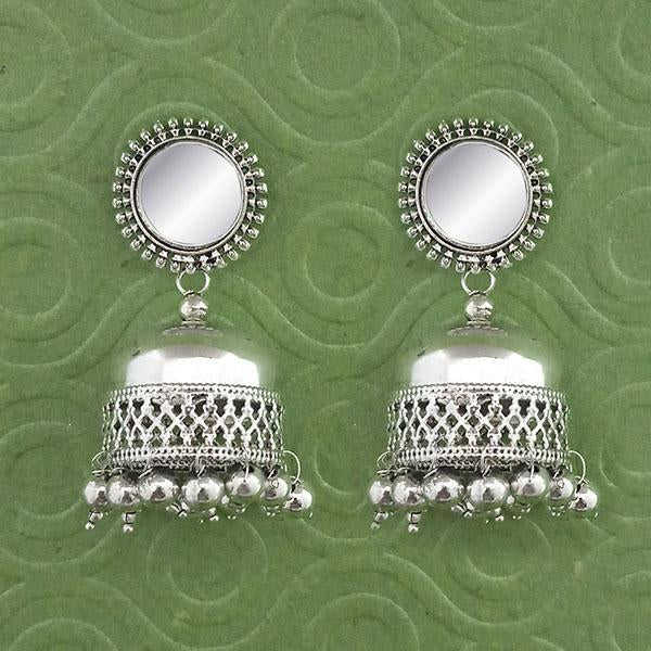 Jeweljunk 1314784 Silver Plated Mirror Jhumki Earrings Trendy Classic Ethnic Princess Cut Hoop Charm for Parties