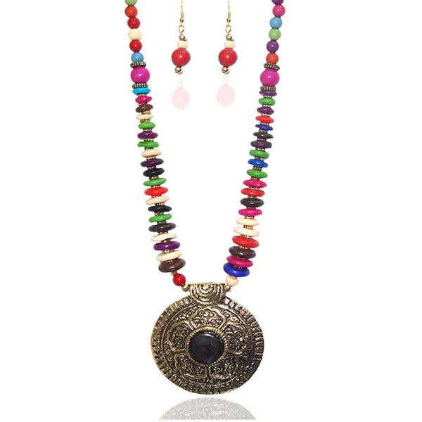 Jeweljunk Antique Gold Plated Statement Necklace Set Fashionable Religious Gift Featuring Quartz Pearl Agate Turquoise Beads